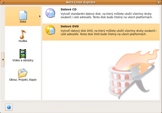 Nero Linux Express is an interface that makes working with the Nero burning program simpler. Selecting a media type, adding files and subsequent burning is done in a form of a wizard that allows you to perform the individual actions. I think that the classic interface is better organized, but if somebody prefers working this way, why not. Less experienced users can be sure that they did not "ruin" anything.